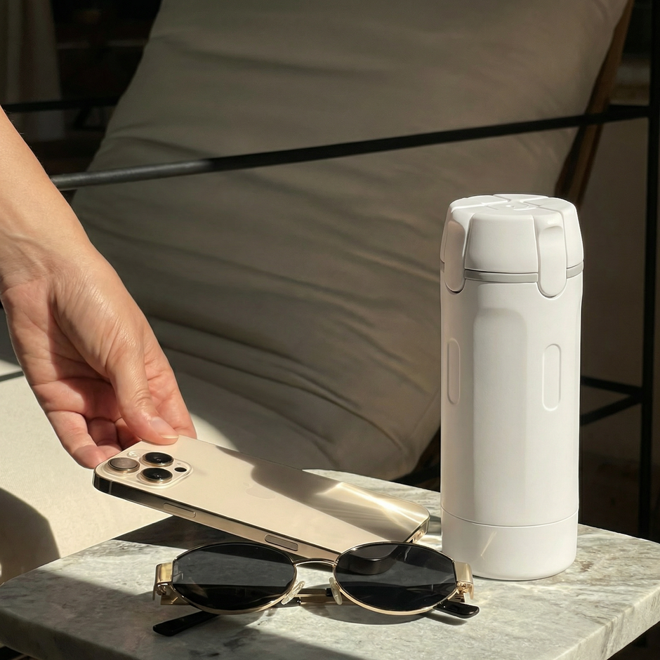 Der Bloom ist ein kompakter 4-in-1 Reisespender mit vier unabhängigen Innenflaschen – alles in einem eleganten Gehäuse. Du füllst jede Kammer mit deinem Lieblingsprodukt, drückst einmal auf den Pumpkopf und dein Produkt ist da. Kein Chaos, kein Kleckern, kein Stress.