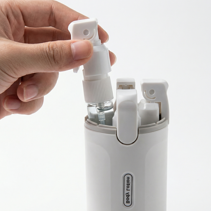 Der 4-in-1 Reisespender hat meine Reisen wirklich verändert. Endlich muss ich nicht mehr mehrere Flaschen mitnehmen, und alles bleibt ordentlich an einem Ort. Er spart viel Platz im Koffer, sieht hochwertig aus und ist super praktisch für unterwegs. Besonders toll finde ich, dass nichts ausläuft. Absolut empfehlenswert!
